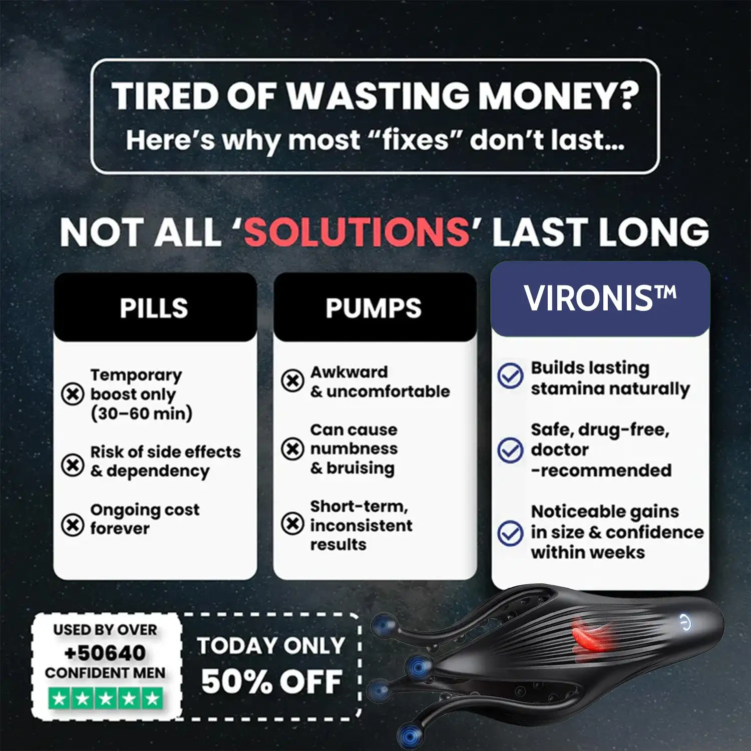 By delivering targeted wave therapy to the pelvic region, Vironis helps stimulate new blood vessel growth, restore firmness, and naturally strengthen erections without relying on pills or prescriptions.